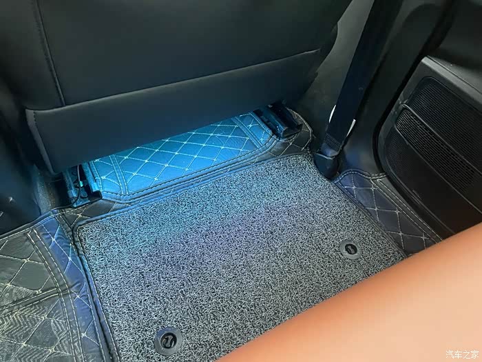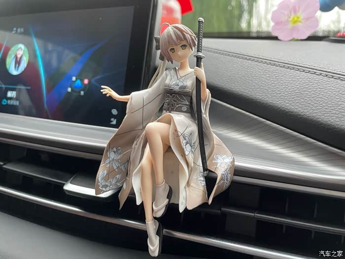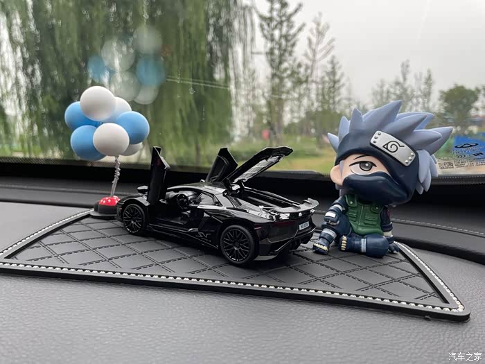 车里的座椅下面还贴了氛围灯,好几种颜色,因为照片是在白天拍的,所以显现不出来它的美,晚上坐在车里很好看,特别有氛围感,车上还摆放了我很喜欢的卡通人物摆件,车标也被我改成了同样哑光的黑色,