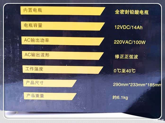 听从车友的意见,在马爸爸家购入了这款多功能应急启动电源,它采用12Vdc,14ah铅酸电池作为启动电源,带修正正弦波,支持最大220V-100W交流输出和12VDC-10A直流输出两种方式,相比市面上的10000ma类似于充电宝一样的启动电源,它的优势很明显。