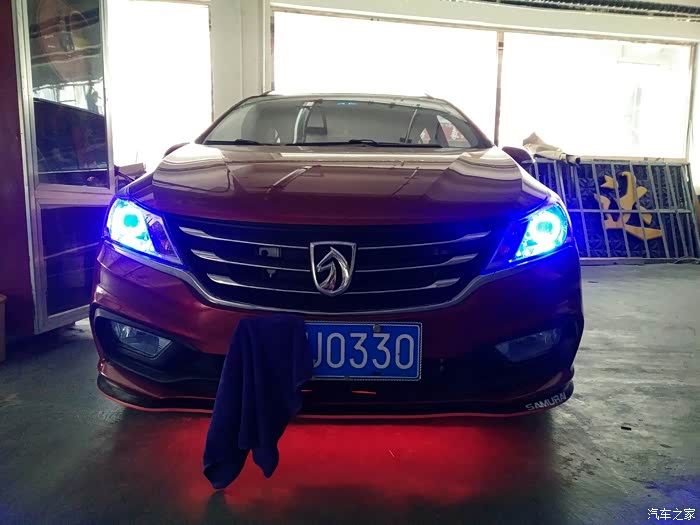 大灯是改装的进口海拉5透镜,在网上买的,改灯店改的。本人也喜欢蓝色,就加了个蓝色天使眼