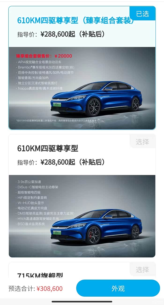 周末去订车,目前715旗舰有现车,四驱还要等,销售说+2万臻享套装会快一些,也不知道值不值?