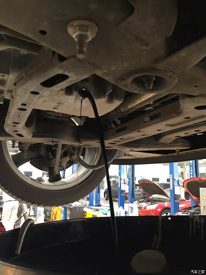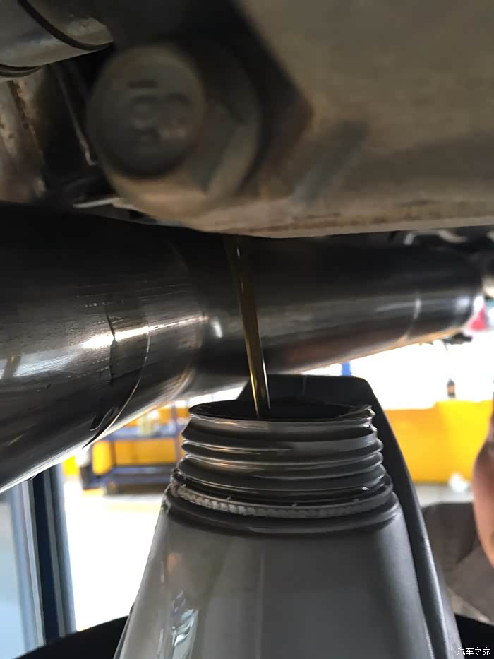 放出来的差速油,师傅用的桶接的,油呈土黄色,没拍出效果,但是眼睛能看出来,油里面混合杂质。