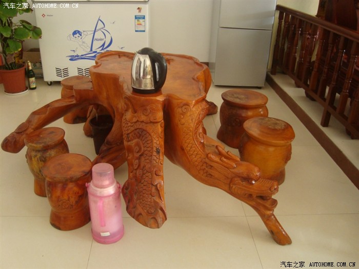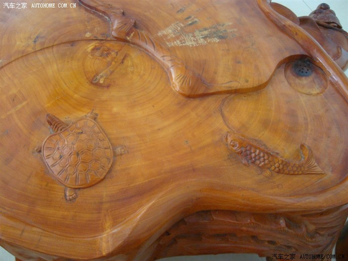 没看懂这个茶几的雕刻,似乎没主题。关键是桌面刻的一只乌龟和一条鱼。难道叫“归一”???