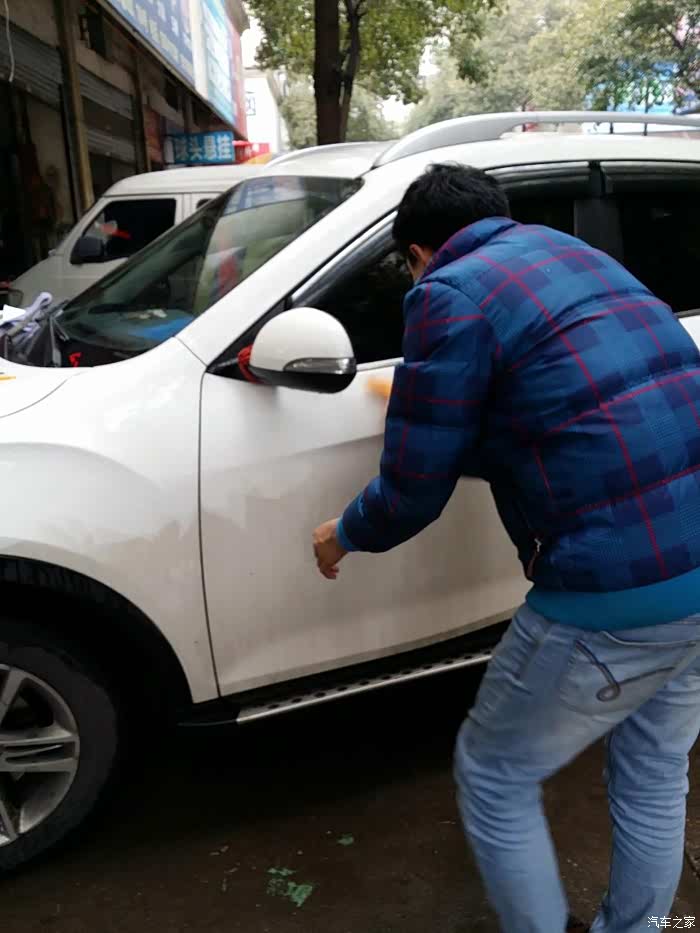 开工,店家帅哥先帮忙清洗车身,很仔细。