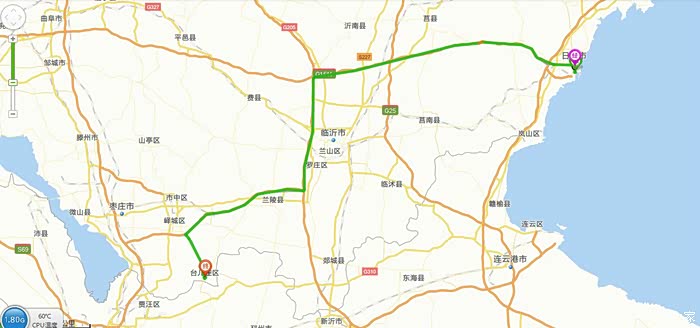 返程路线大致310公里 。 途经京台高速公路,日兰高速公路,用时约4小时30分钟.