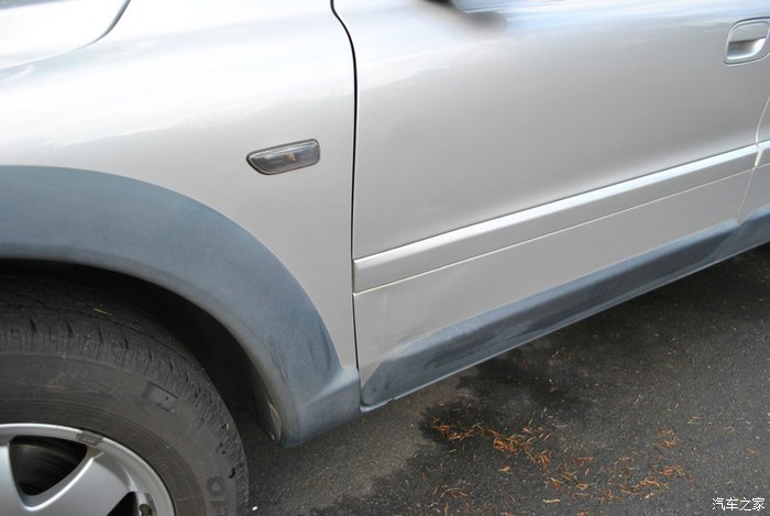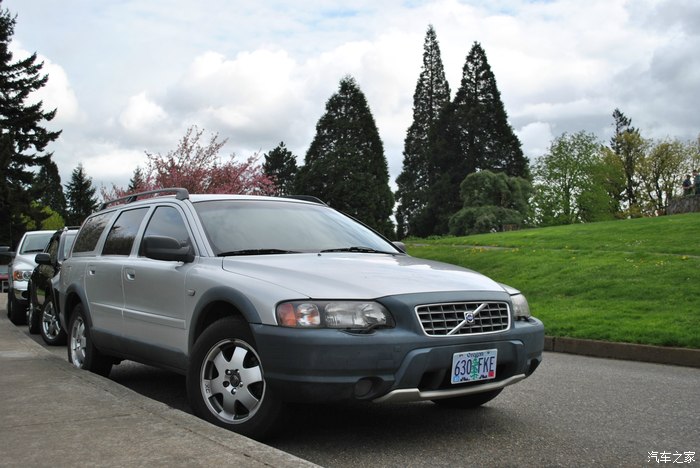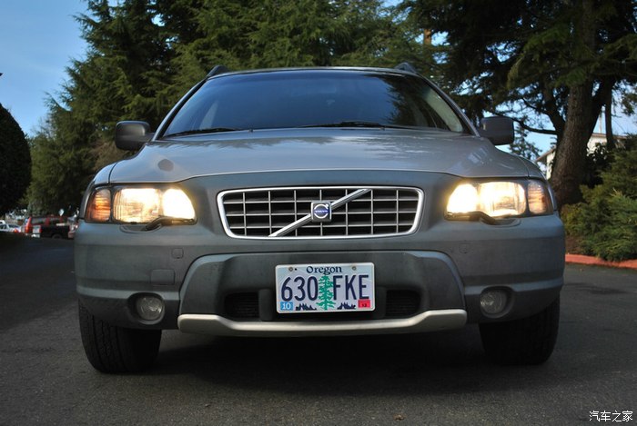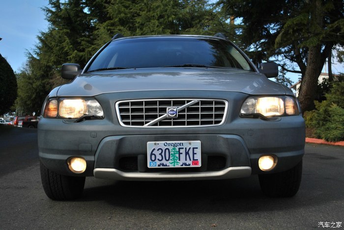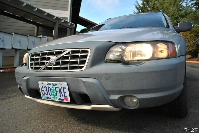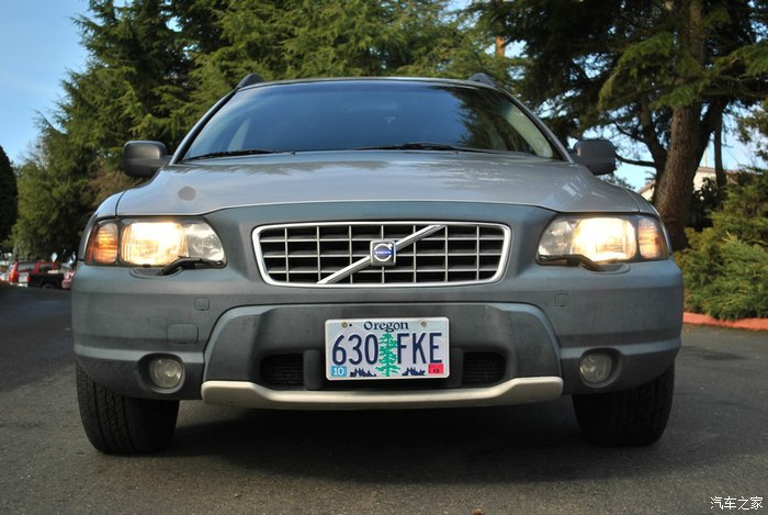 右前照片,可以看到XC70车型的塑料包围和塑料保险杠,以及较V70明显升高的车身。