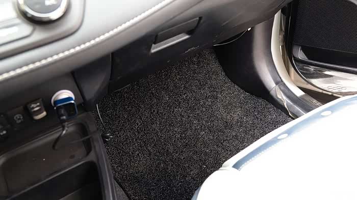 前排驾驶位铺装脚垫后的整体效果,与车型完美贴服,漂亮。