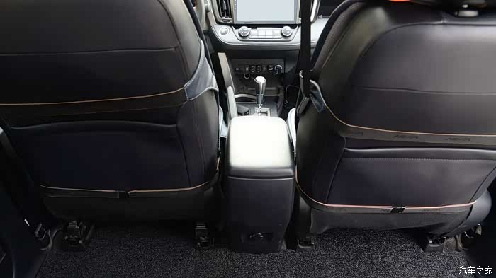 后排座椅中间位置细节放大。