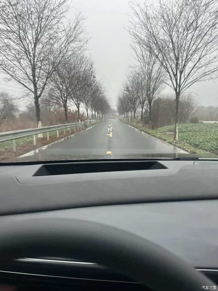 南京最近的气温下降比较多,早上前几天可能都0度了,这两天又恢复到5度左右,还是比较冷,明显车子续航掉的比较快。一路上车子不算太多,红绿灯应该40个那样,开车习惯基本上会顶着限速,偶尔会差点,不会慢悠悠跟车晃的状态。这个HUD说实话虽然简洁,显示内容不像各种界那么高大上,不过够用了,主要就是看速度,路线转向等。