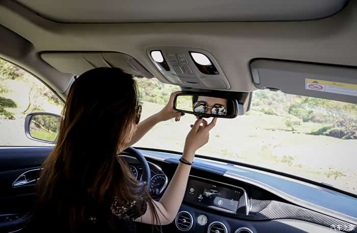 那等等我补个妆。后视镜调节非常便利我都不用打开遮光板上的化妆镜了。