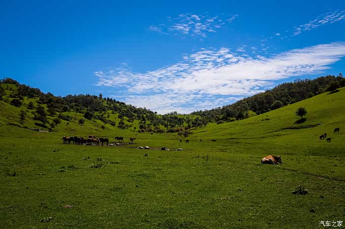 并没有顺利的擦完车,但也没有影响我们看风景的心情,继续往山上开,牛羊和马儿越来越多。