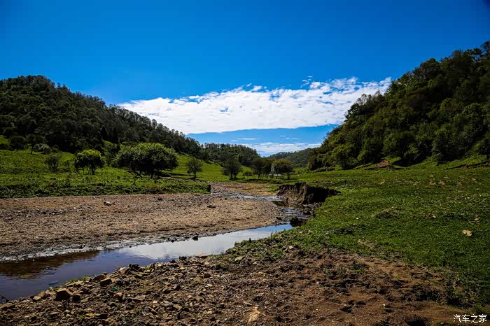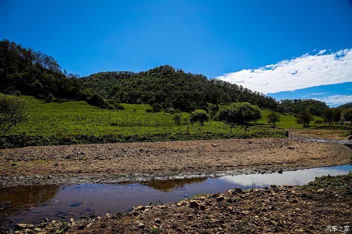 在牧场中转悠了几圈,这个地方非常不错,但是由于牧场内不能随意下到草地里,我按照车辙印走非常守规矩的找了一块地方来擦车。