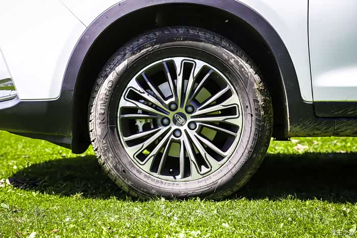 18英寸双色轮圈视觉效果很动感的,配备了锦湖凯路得系列的SUV专用轮胎,规格为235/60 R18.