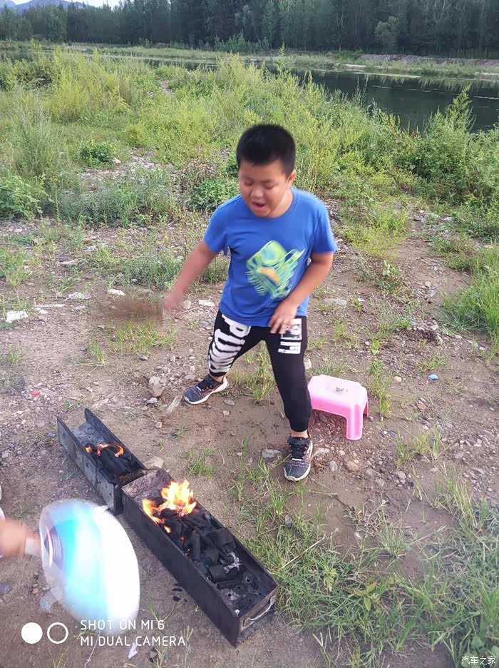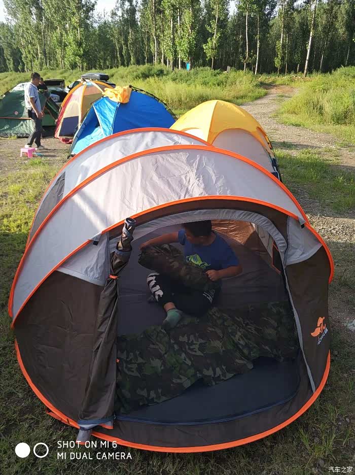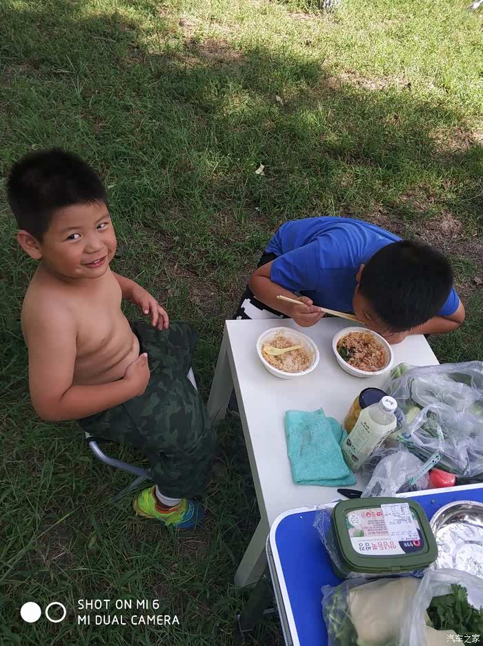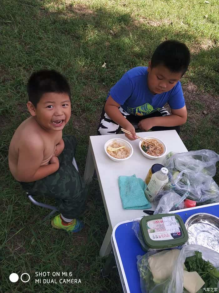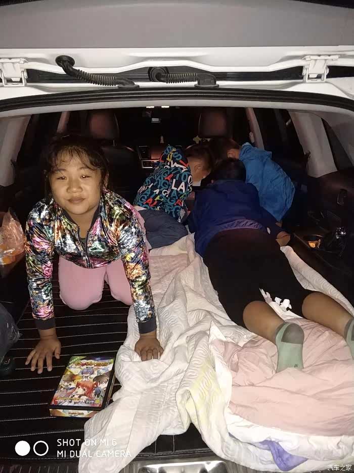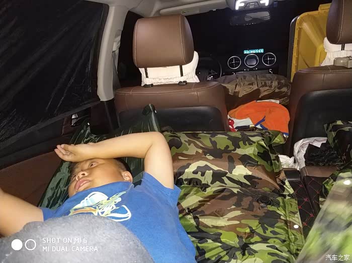 到晚上有点凉,怕两个孩子着凉,所以决定睡车上,唐后座放平了还是和平坦,睡两个人还可以,这晚睡3个人差点把我挤成肉饼!