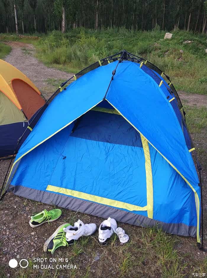 看地上这双耐克鞋,就知道有钱人家的公子。如果没猜错,帐篷里面正在喝着“王者农药”!