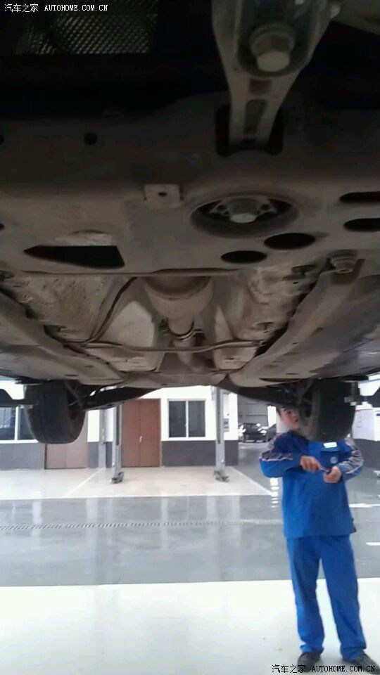 师傅检查底盘:轮胎上很多小石子。检查的还是蛮认真仔细的
