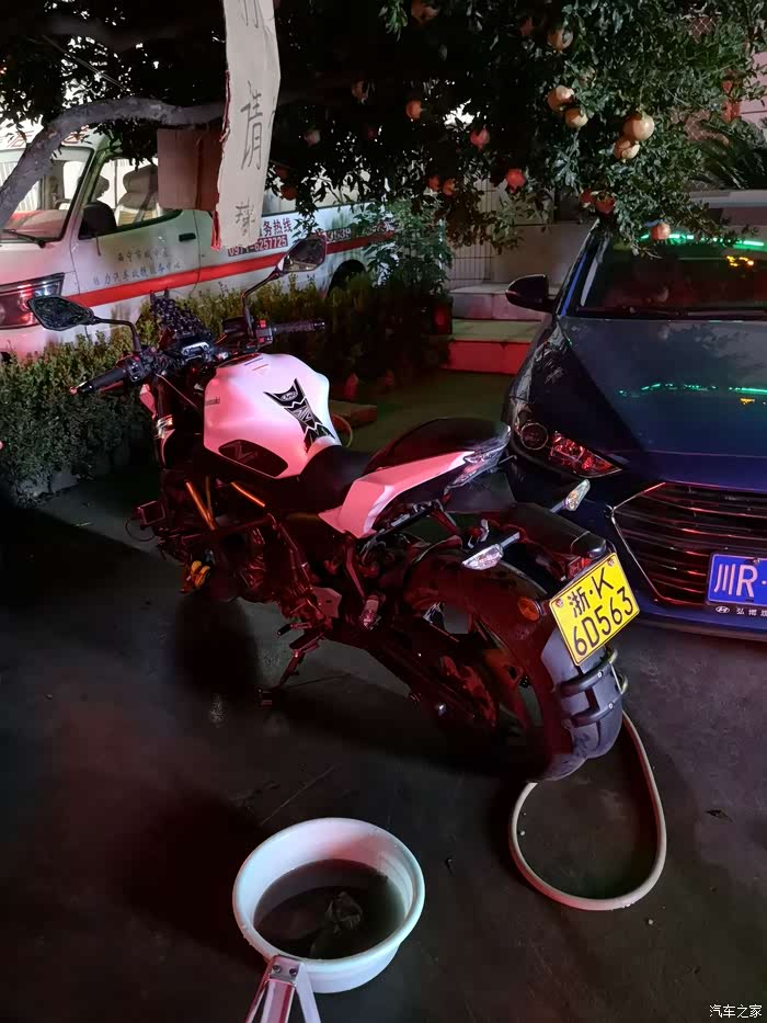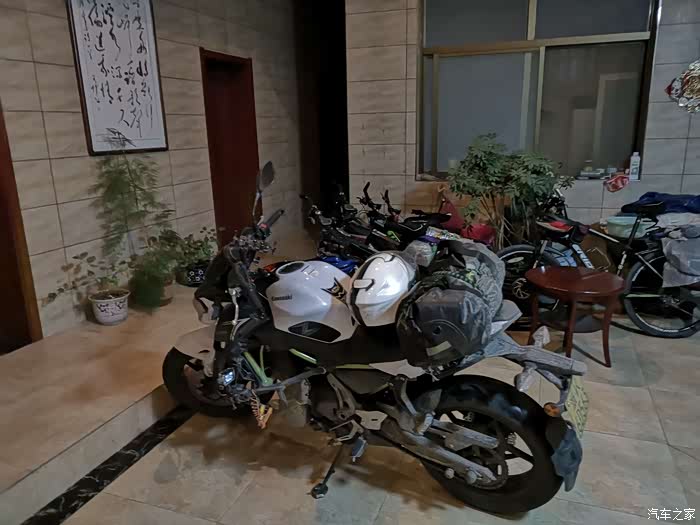 约好了妹子,问老板有没有洗车的地方,老板说门口院子有水管,可以自己洗。于是问老板借了脸盆和抹布,自己把车擦洗了一遍。停回室内院子,然后休息,准备第二天一早登华山