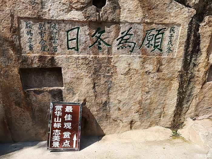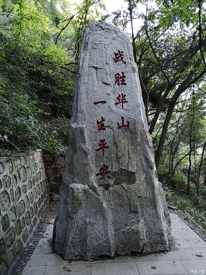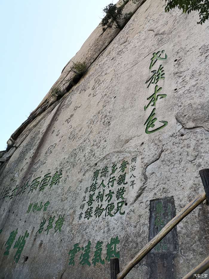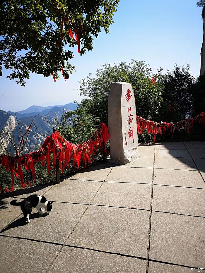 华山论剑石碑。这碑东南西北四个峰都有,其中北峰和南峰的都在峰顶,被排队围着各种拍照。这块应该是东峰的,不在峰顶,连猫都懒得靠近。西峰的最敷衍,就是一块木板,还被拍照的摊主拿布盖上了,得花钱拍照才掀开
