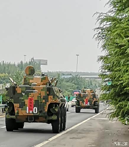 每辆车的后面都有一块红牌子,最后面那辆车的红牌子上写着“前有车队”。说实话被吓了一跳,装甲车都出来垫后了,前面车队得什么规格啊!?万一发现我了,会不会赶我下去?会不会对我处罚?会不会通报单位......脑子里迅速闪过十万个“会不会”。然而前方并没看到车队。这些大家伙速度不快,也就90多码,好多车估计也是被这阵势和“前有车队”的牌子吓着了,老老实实跟在后面慢慢开。后来我寻思,得避开他们,干脆超过他们,就近找个出口溜之大吉。可刚超过最后那辆车,看到中间那辆车后面的牌子,我就放弃避开的念头了——那牌子上写着三个大字“别 吻 我”!话说,现在的兵哥哥们也这么皮了吗?