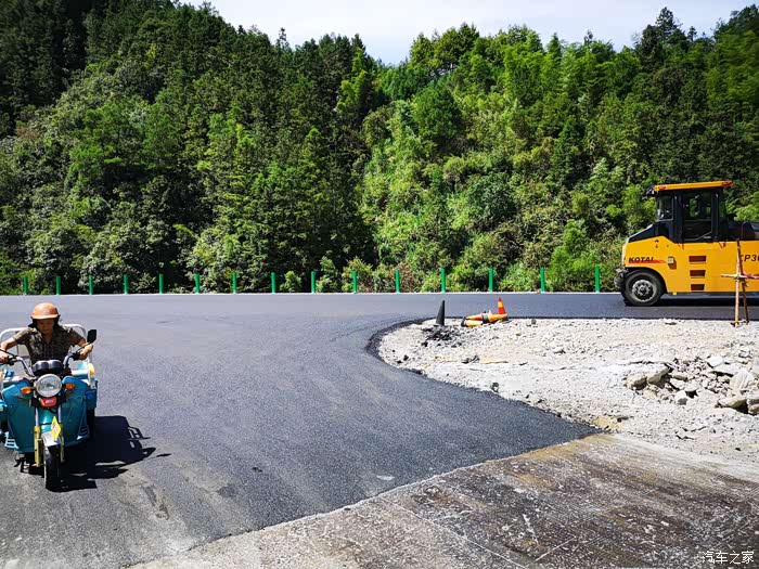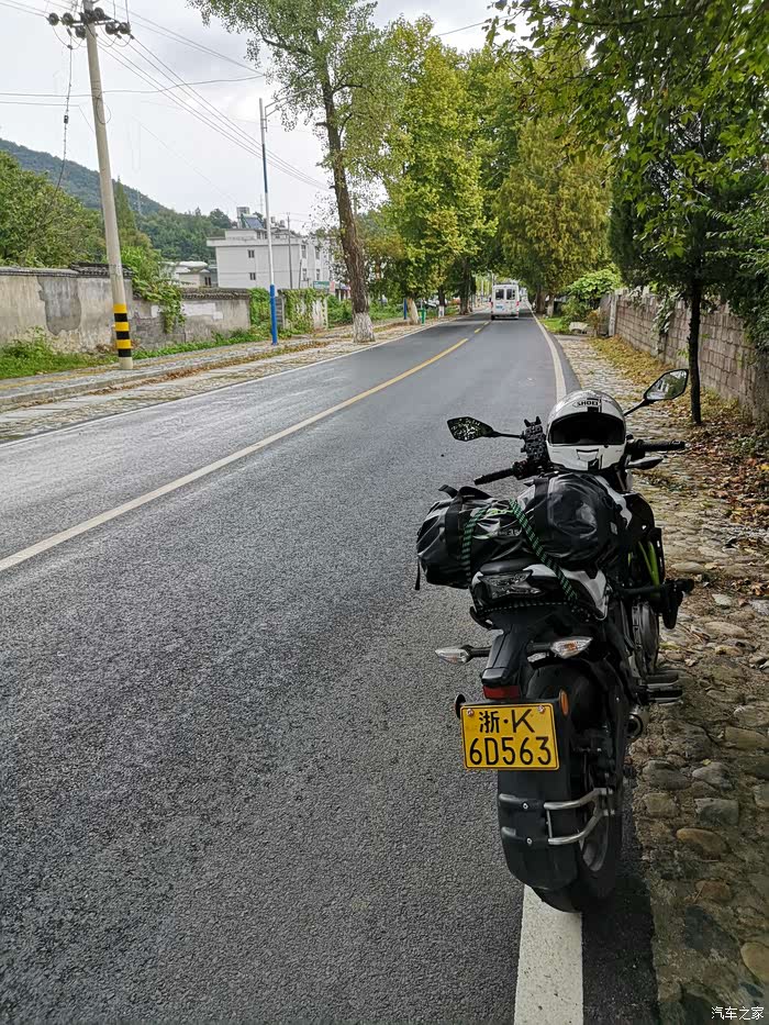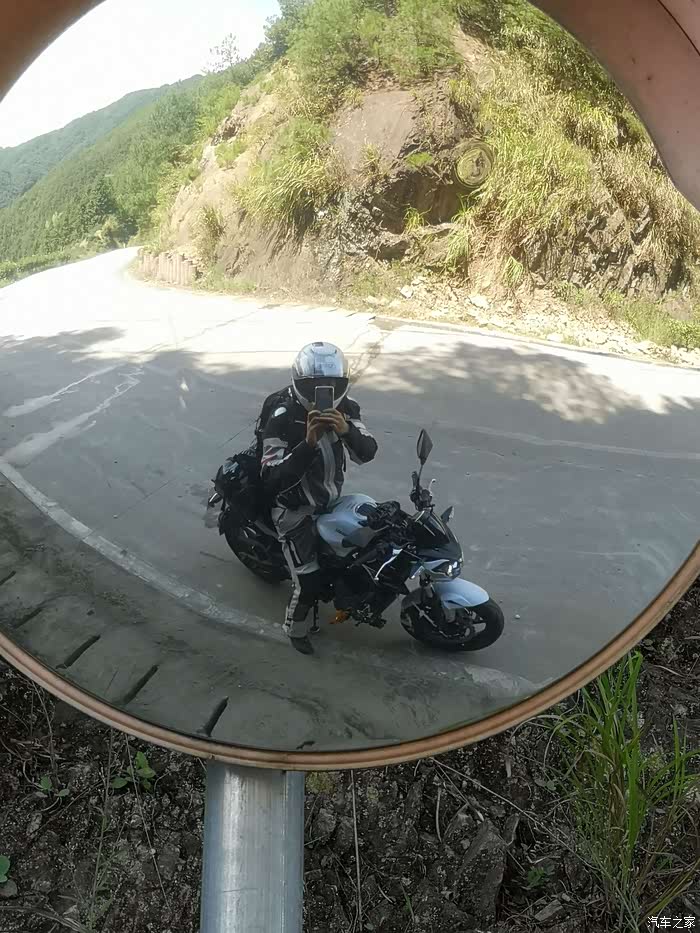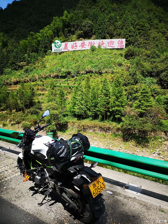 虽然心里极度不爽,经过这个弯道的时候,还是强压着来张自拍,自我调节一下。下车查看轮胎,柏油有点凝固了,但也粘住了许多路上的砂石。要知道我规划路线时,皖南这边不走高速就是为了体验这里的山路,压压弯,看着两只轮胎,刚才那波***又奔腾了一遍。到路边找石块刮轮胎,可这里的石头一刮就碎,根本没用。没办法,硬着头皮先向前开吧