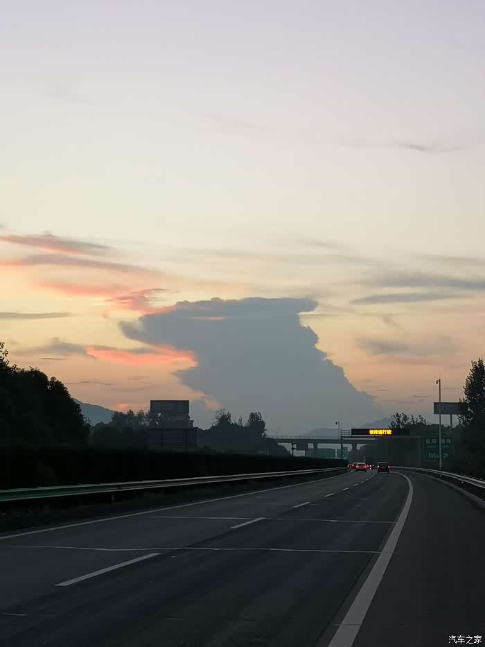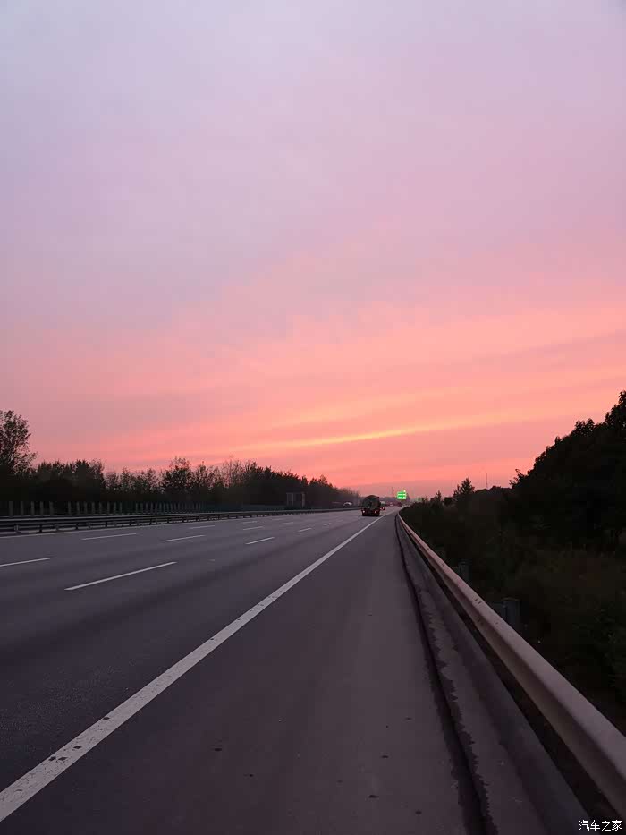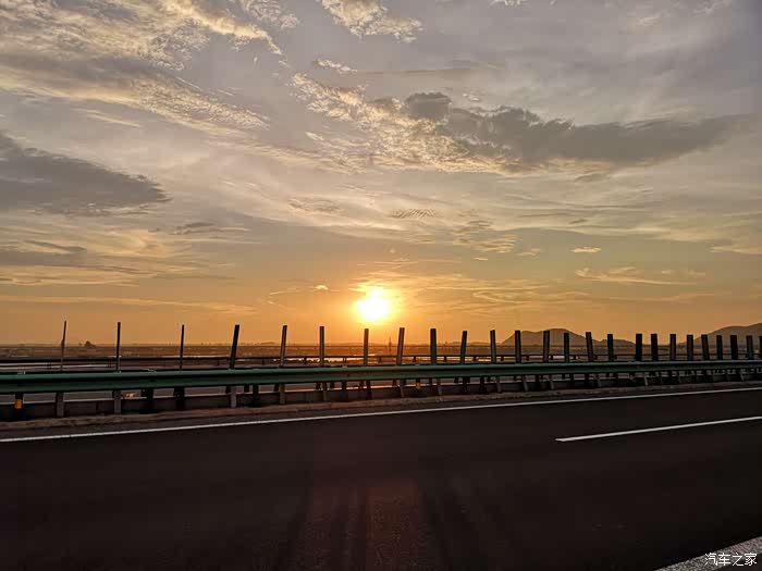 继续出发,前方也是一片醉人的霞光。此时距离目的地华阴市只剩不到一个小时车程了,前方就是河南陕西的省界。原计划从省界提前下高速,走国道直达华阴。可一天跑下来,真心有点累了。心一横,不管了,直接闯省界!往前就到了潼关收费站,也就是省界收费站。进收费站之前,关了射灯和远光,偷偷摸摸溜到最右边超宽车道,跟在大车右侧过了收费杆子。很庆幸能顺利过来,也不敢停下来拍照,重新打开射灯和远光,跑!