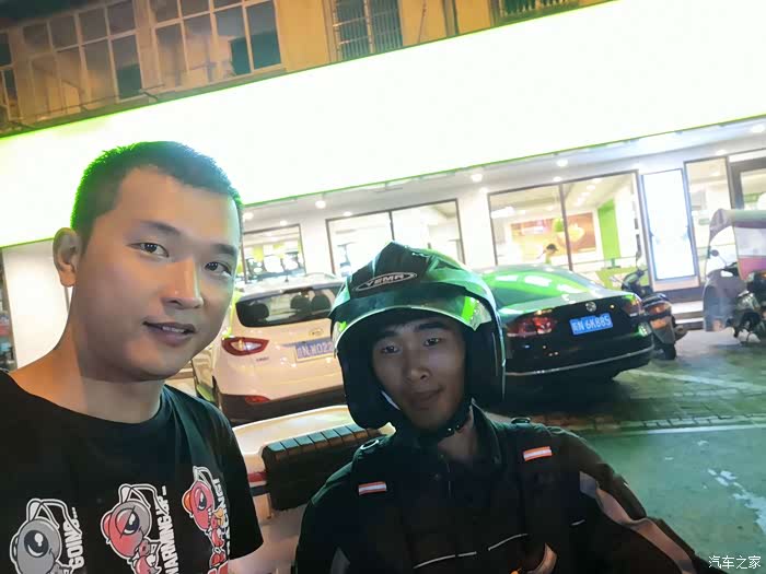 刘哥本来是要直达合肥的,但是既然捎上我了,就一直把我送到舒城,陪我到我一个同行摩友“大牙”安排好的酒店安顿好。由于我到的时候,“大牙”还在加班,于是刘哥又请我吃了晚饭,这才一个人出发。出发前合影留个念。虽说天下摩友是一家,可也不是每个摩友都能以如此真诚的态度对待陌生的朋友。又被感动了一阵