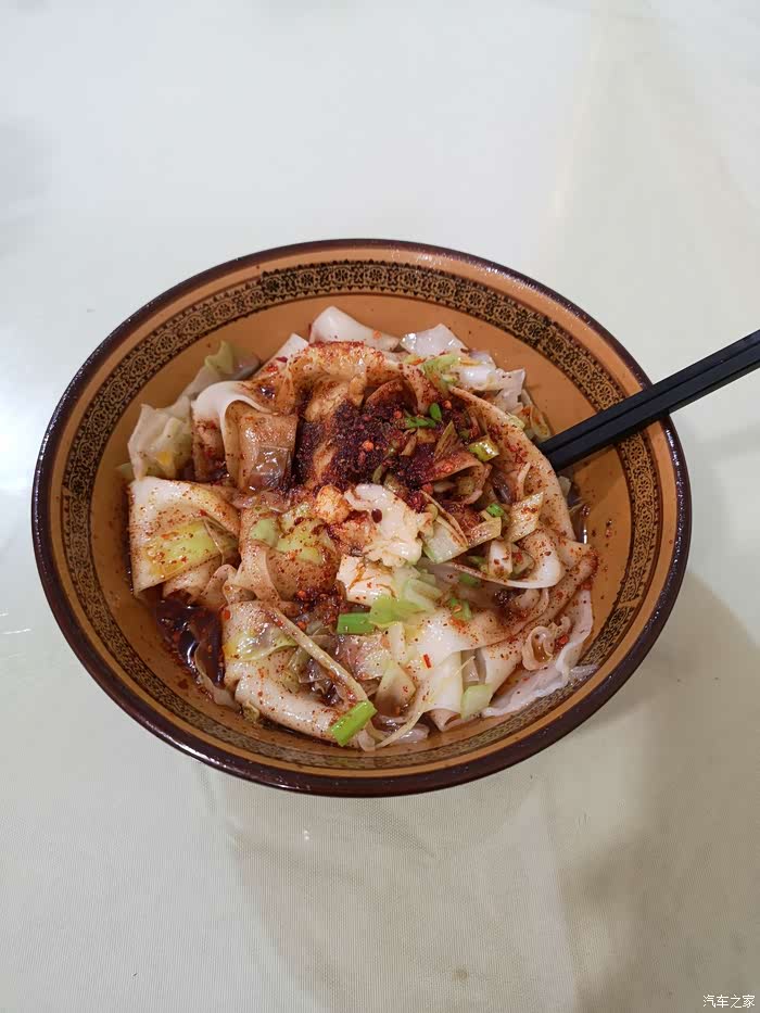 东西放好,赶紧洗个澡解解乏,顾不上洗车,先出去觅食。陕西这边的面食还是比较有名的,到街上先来碗biangbiang面。