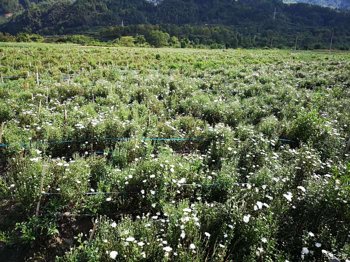 出了黄山市区,路边很多地里都种了这样的植物,成片开着一点一点的白色小花