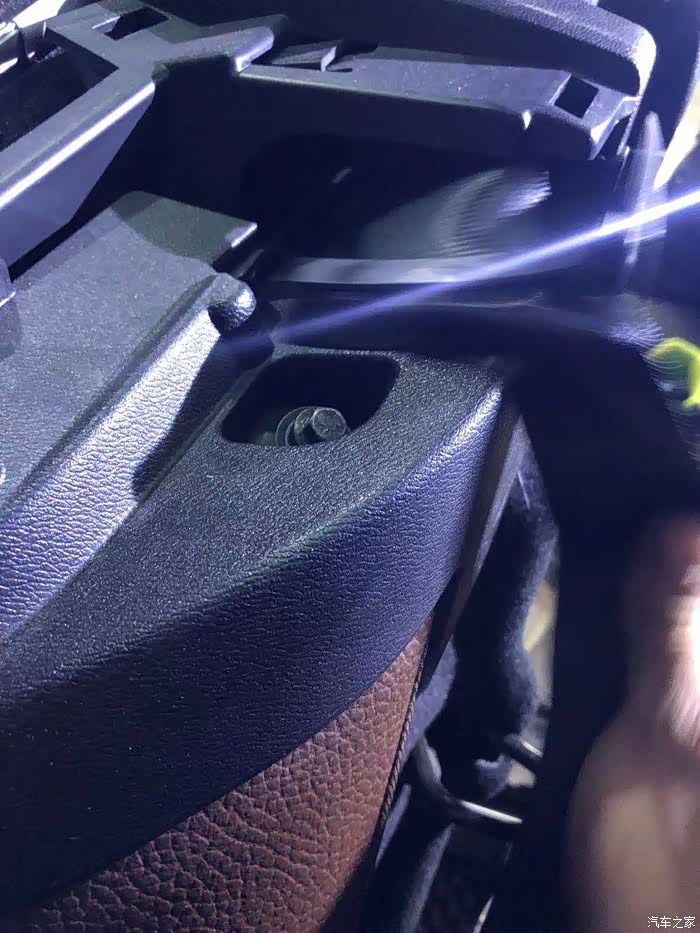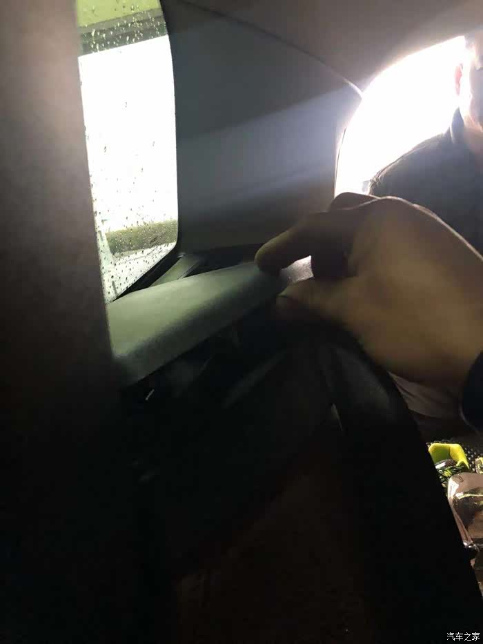 接电有两种方式,一种是最简单的方式直接插后排点烟器,一种是稍微复杂点接原车12V保险,我们为了更好的表述选择复杂一些的接保险方式,此图是扒开胶条,把内衬拨开。