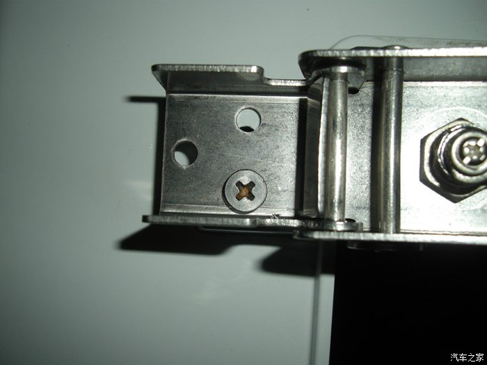 这里也需要重新定位,并调整挂钩的倾斜角度。因为新装的扣锁和挂钩间的缝隙较大,要反复调整,直到搭扣结实,又不会导致备胎罩变形。