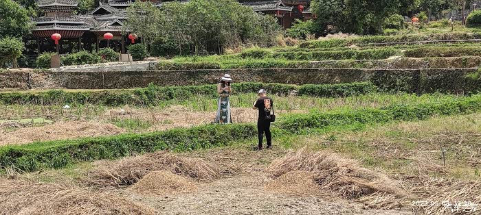 美女穿着民族服饰在田间拍照~
