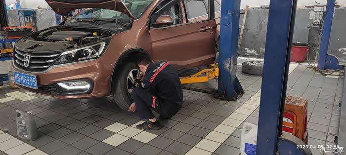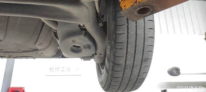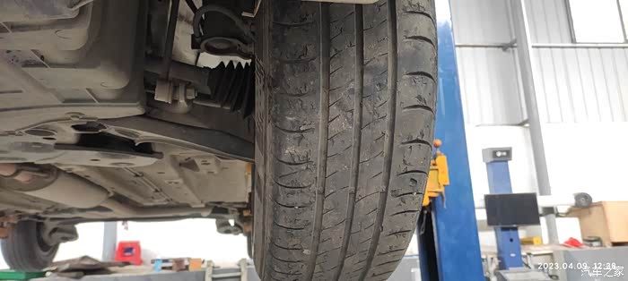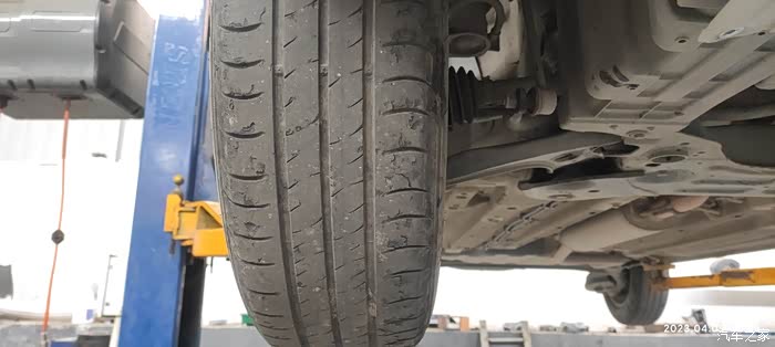 保养进行中,我察看一下轮胎的磨损情况。