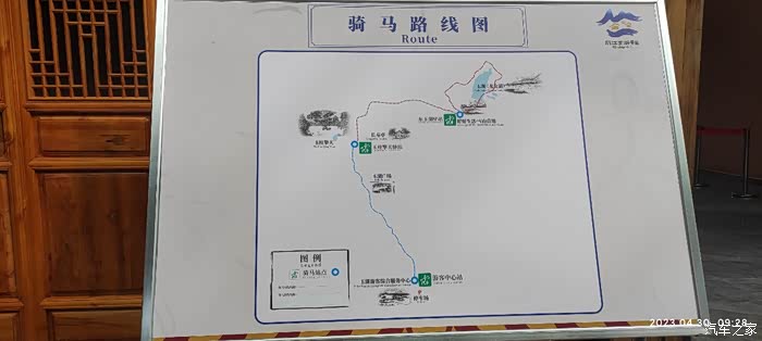 这是骑马路线图,骑马到一半,再坐电动旅游车到龙女湖。