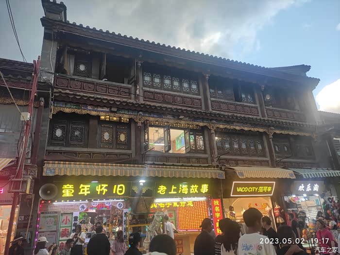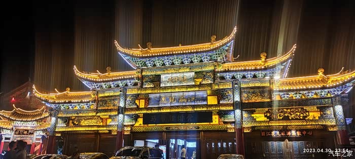 吃完粉就告别美女老板,又来广场上。天黑了,打开手机相机的夜景功能给这亦中亦洋的建筑来一张,嗯,明亮得多了