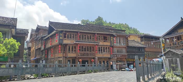 往里面走,侗族风格的建筑。