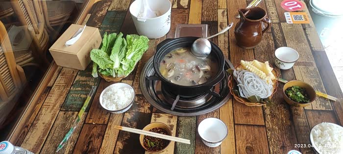 不一会儿老板就准备好了火锅和饭菜,味道还不错,但只能用餐一次,我们两个提前吃了午餐