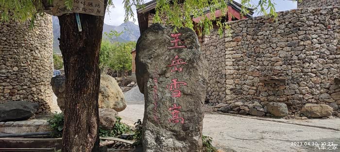 玉湖村海拔2900米,走到玉湖村中央,只见一颗大树旁立着一个石碑,上面写有“玉岳雪嵩”四个大字,原来玉湖村原名雪嵩村。