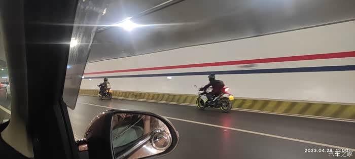 隧道内几辆摩托车疾驰而过,哥们和同事对于摩托车能上高速这种现象表示很惊讶,哎,少见多怪