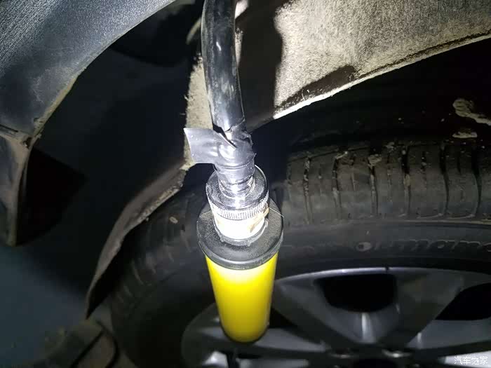 工具是一个家用收纳袋抽真空用的负压气筒,估计可达到0.3—0.5个的负压,这个压力不会有损车辆,还有变径洗衣机接头一只,以及其他必须的工具。油箱内剩余油料最好低位,抽气时顶开油箱盖气体循环。