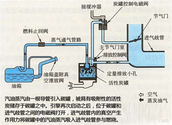 碳罐装置工作原理,但这图好像不对,应有一根是呼吸管。 (网络图片,侵权立删。)