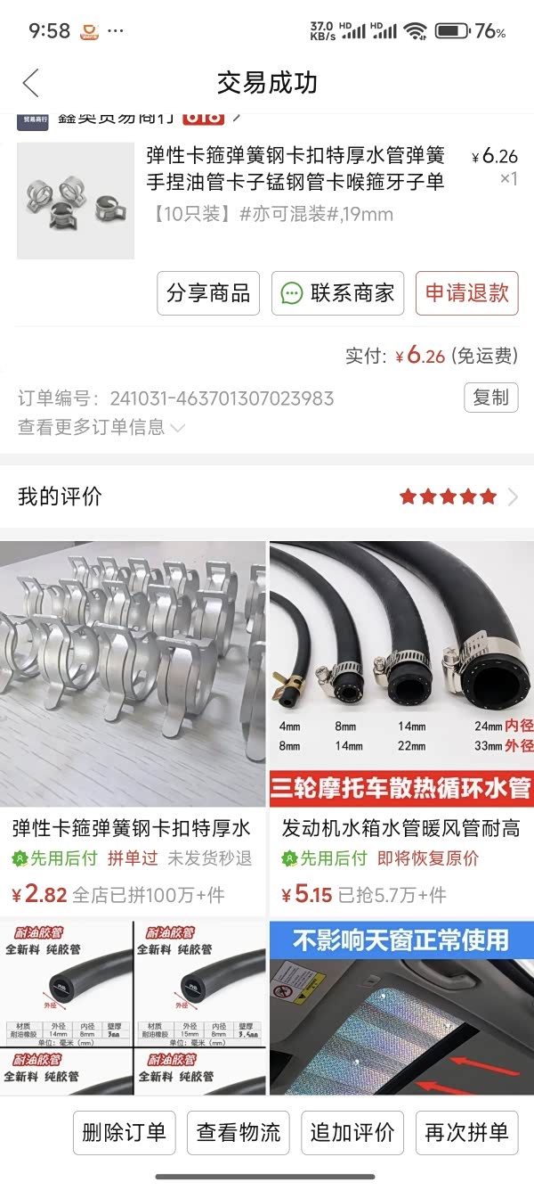 钱,带卡箍和密封圈。到货那天我扛着千