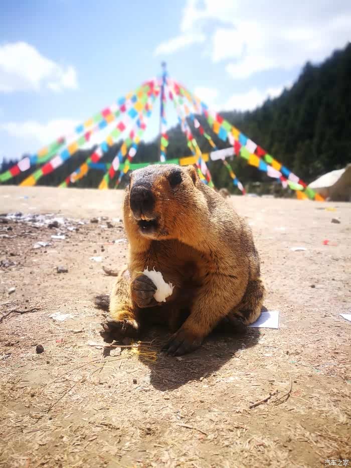 达宗湖原本是当地藏族人祭祀欺负的一个山顶小湖泊,这几年游客多了也开始收门票挣钱了。其实达宗湖很小走一圈也就10分钟。大多数人来这里主要是为了看看土拨鼠,土拨鼠其实在草原上很多,但是这里的一窝土拨鼠据说是村长喂的所以很亲人可以近距离接触。
