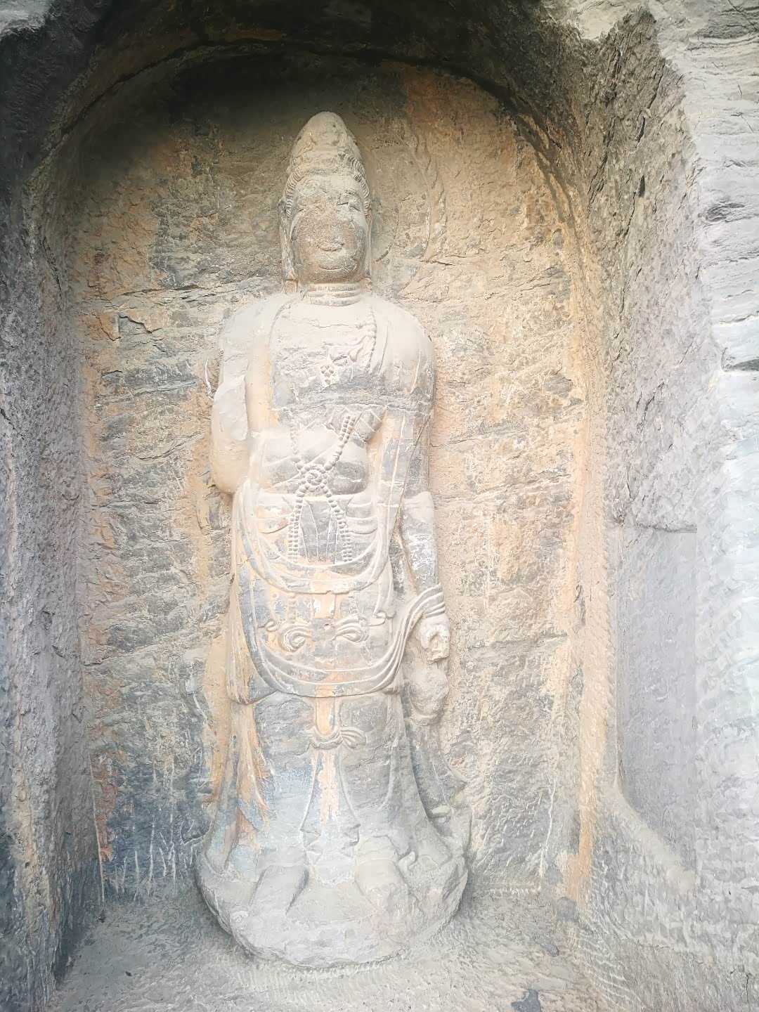 千手千眼观音龛,唐代造像。摩崖平面,壁面上浮雕一尊长有一千只手和一千只眼的菩萨,此造像为龙门唐代密宗题材。