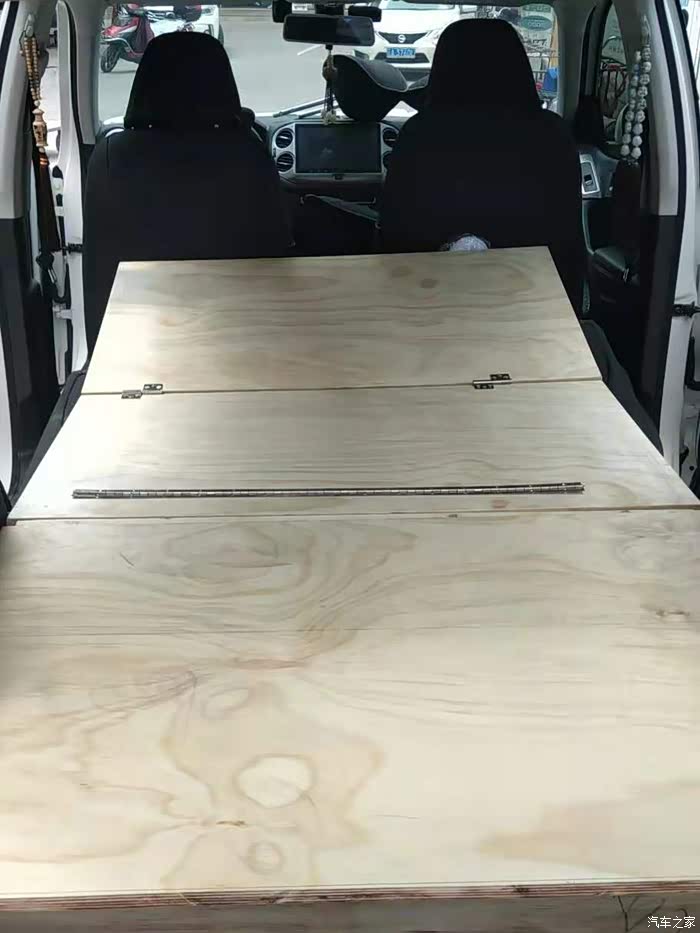 最简单的方案,如果你的车子把座位放倒能形成一个基本平整的空间,那么只需铺上一张木板就可以了。