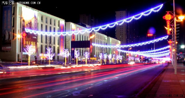 P20:春节前随启蒙老师去开发区管委会拍的夜景.路上的红条是汽车留下的灯光.
