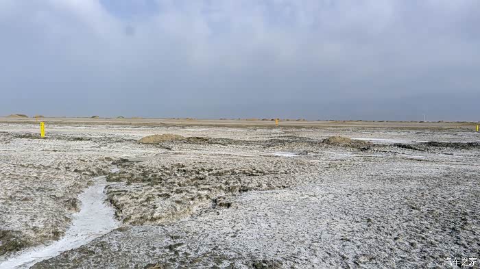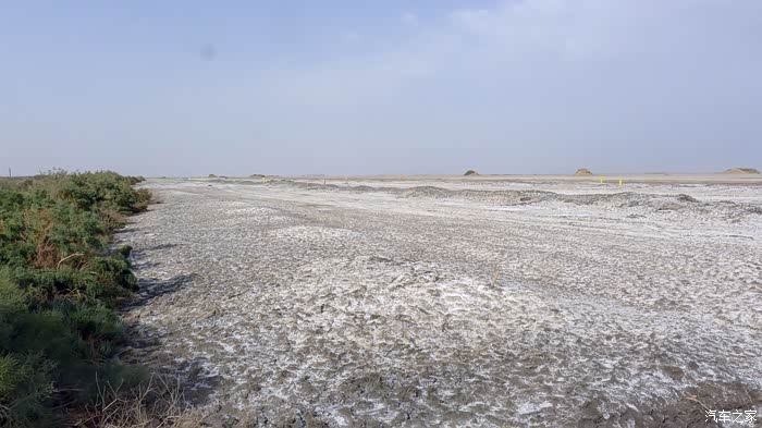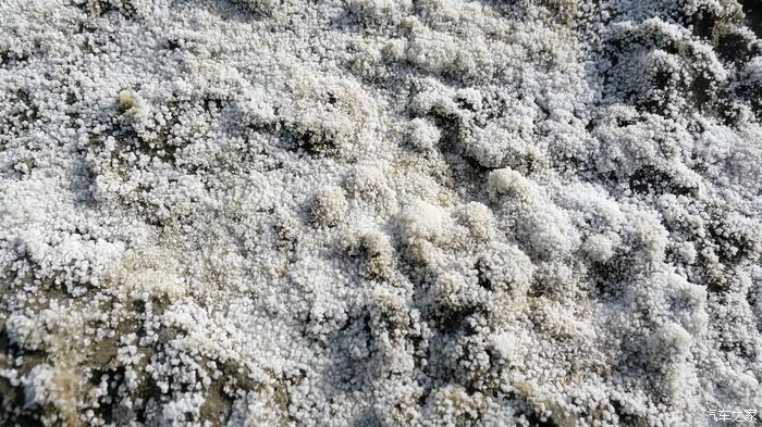 开着开着,路边渐渐出现像雪地一样的景象,我好奇地停车下来看看,原来这是盐碱地