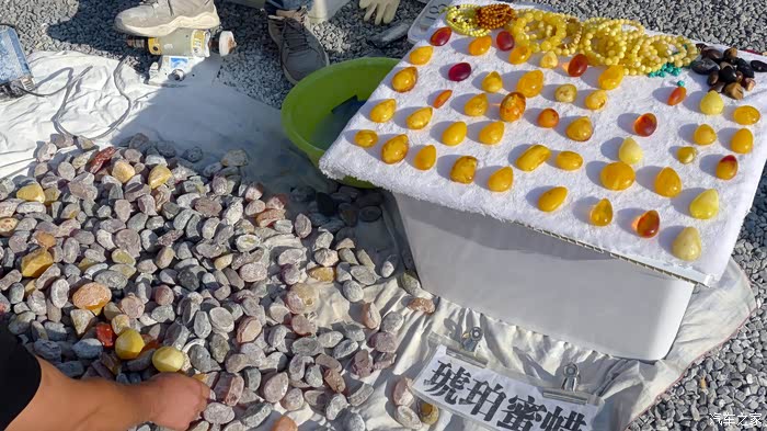 湖边还有人售卖各种捡来的石头