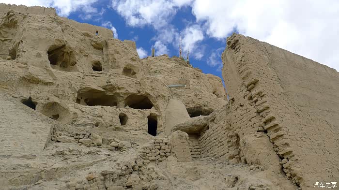 到了古格王国遗址,首先看到的是最底层的土窑房。整个遗址建在一座土山上,建筑分上、中、下三层,依次为王宫、寺庙和民居。