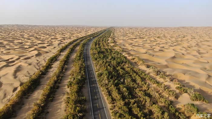 沙漠路段实施公路防护绿化工程,也算是一个伟大的工程了