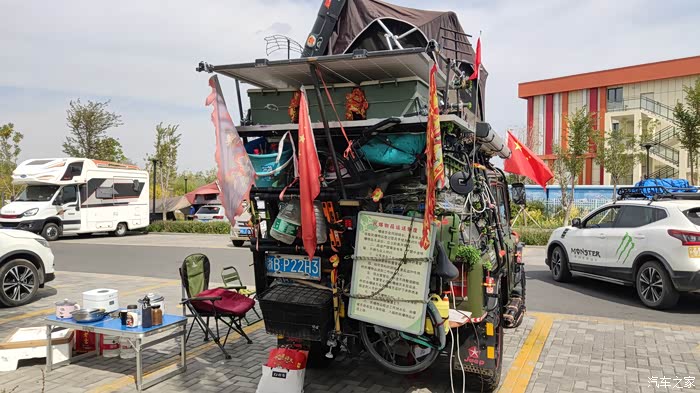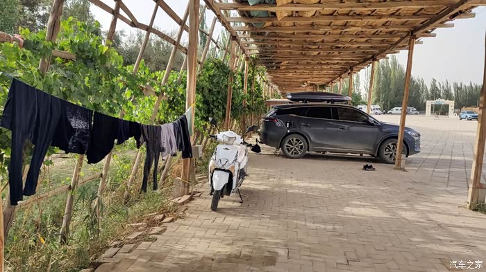 找到一个位置,免费电源插座刚好还有空位,我拉线给我车充上了电。今天就在这休整,清理一下车子内部的卫生
