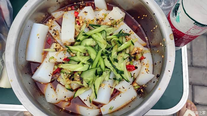 独库大本营的确是自驾圣地,全国各地旅友汇集在一起,大家交流聊天。我刚到就融入进这个大家庭,受邀晚上一起晚餐烧烤活动,这是车友做的爽口凉皮